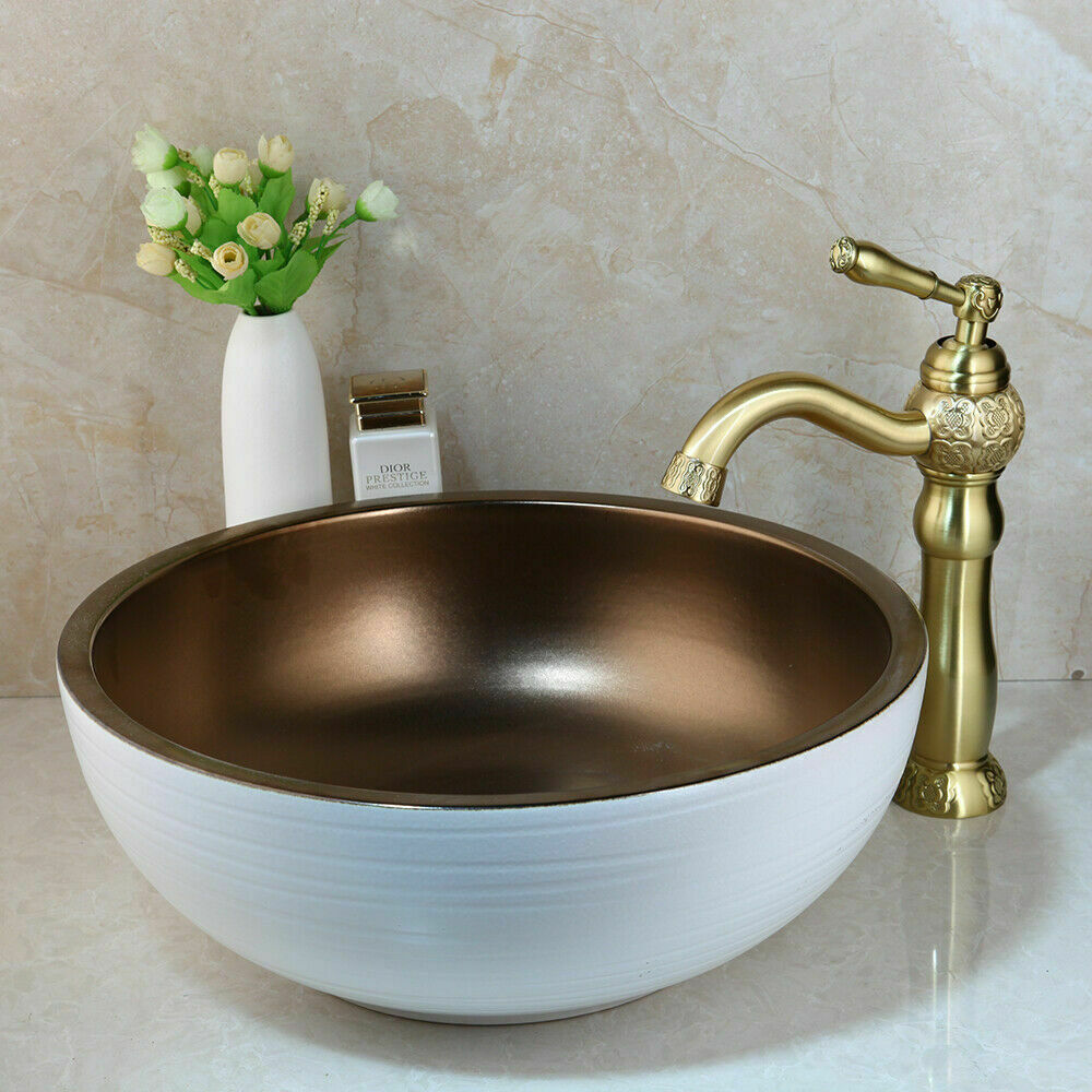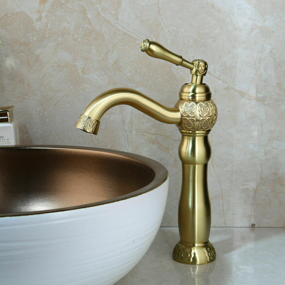 Sierlijke mat gouden kraan (mengkraan) zorgt voor een extra luxe uitstraling van uw badkamer.