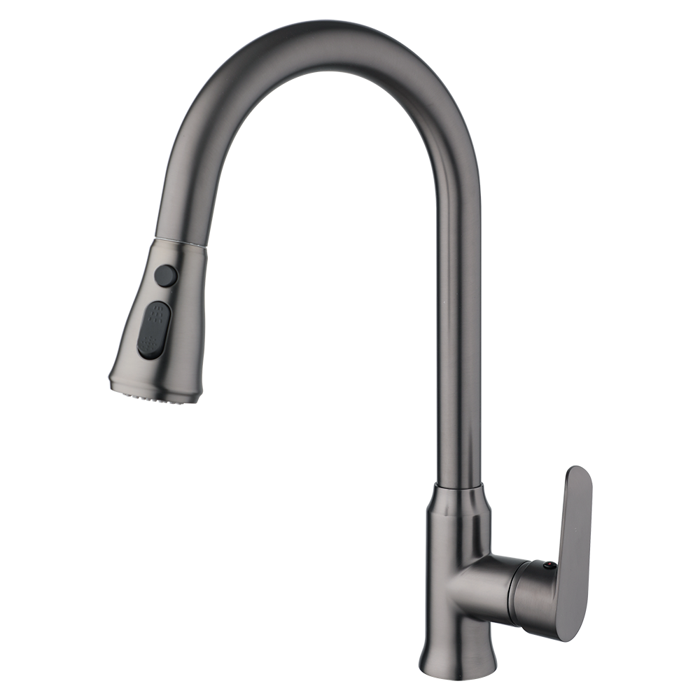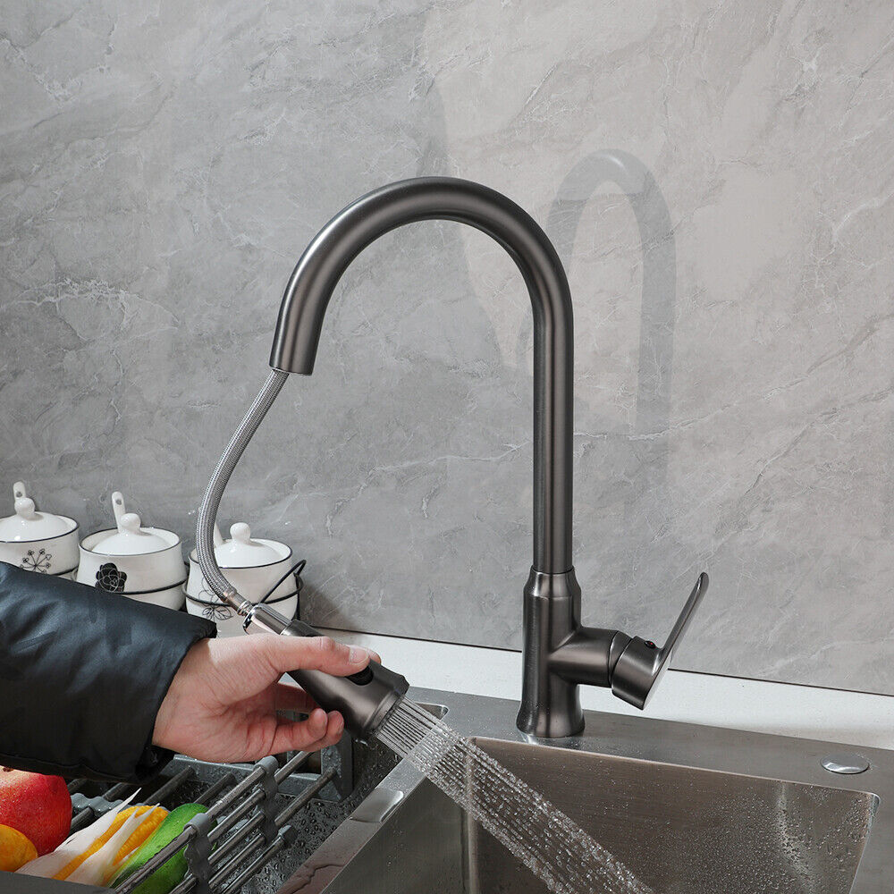 - Stijlvolle gun metal keukenkraan met uittrekbare sproeikop