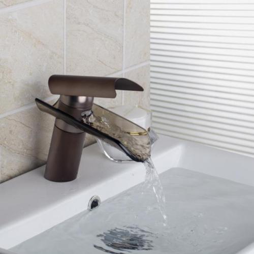 Mooie en elegante waterval wastafelkraan voor uw badkamer met mooie gekleurde halfronde glazen mond
