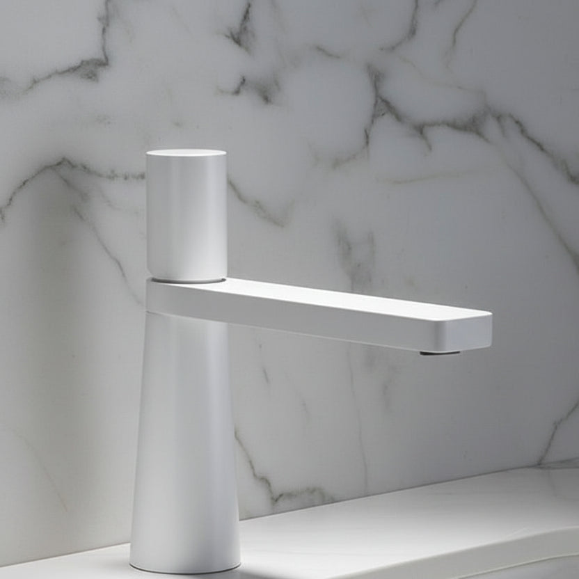 Deze moderne wastafelkraan in wit combineert een strak design met optimaal gebruiksgemak. De frisse, lichte afwerking geeft je badkamer een rustige en stijlvolle uitstraling en past perfect bij zowel moderne als minimalistische interieurs.