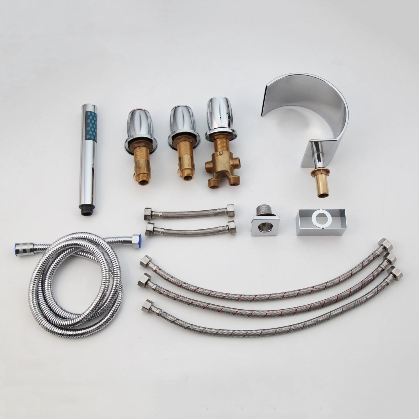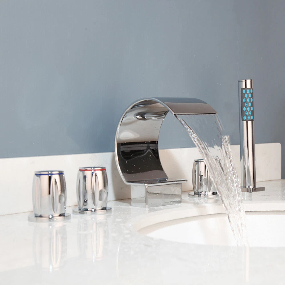 - Uitvoering: 5-delige waterval badrandkraan met handdouche