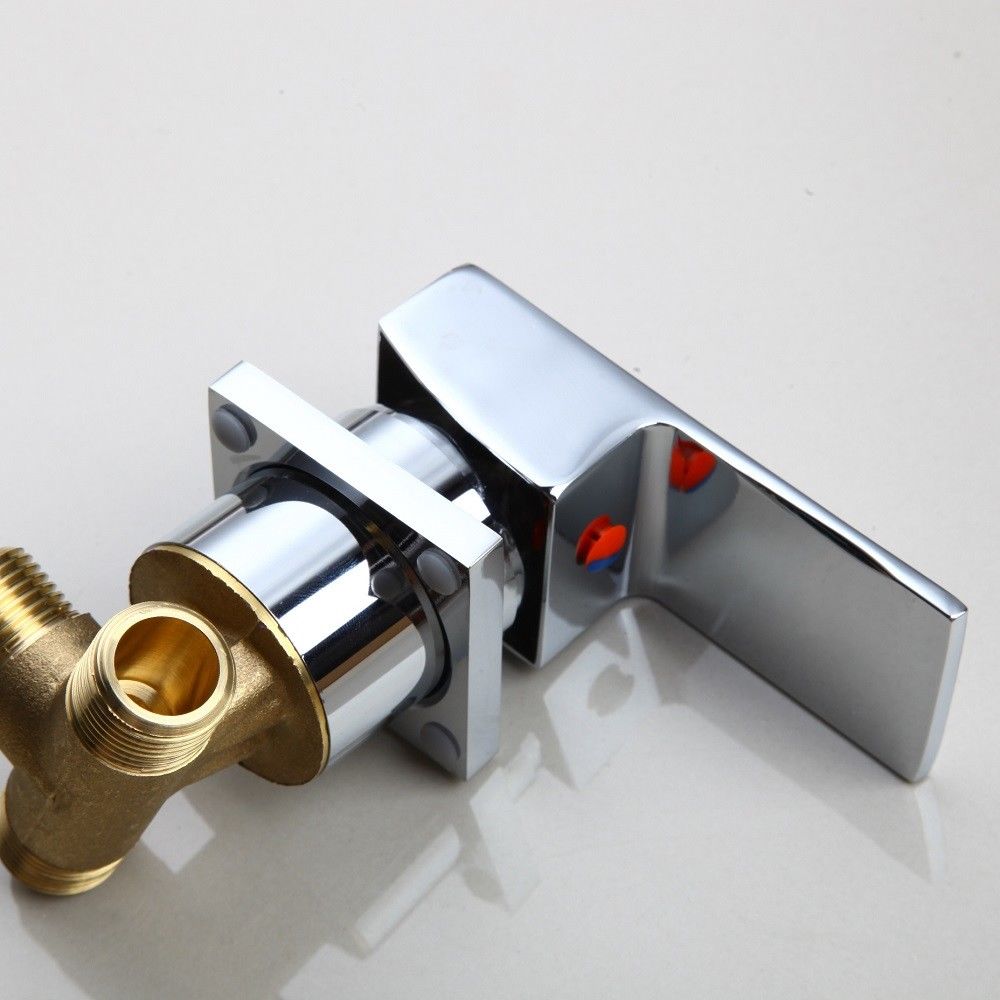 Waterval muurkraan chroom met bijbehorende bedieningshendel.