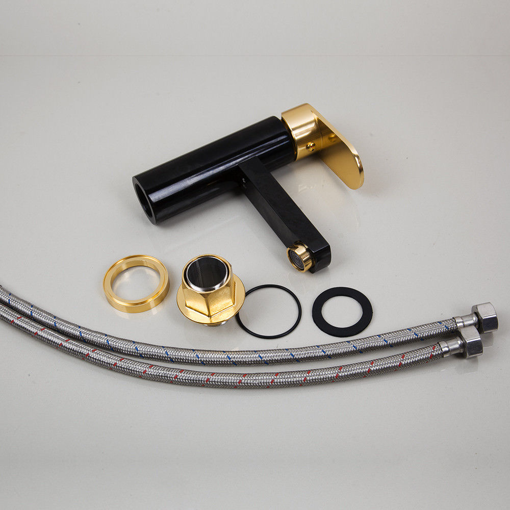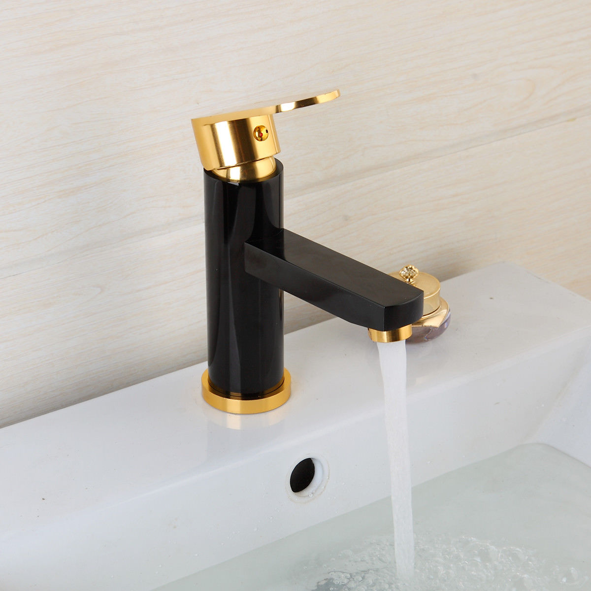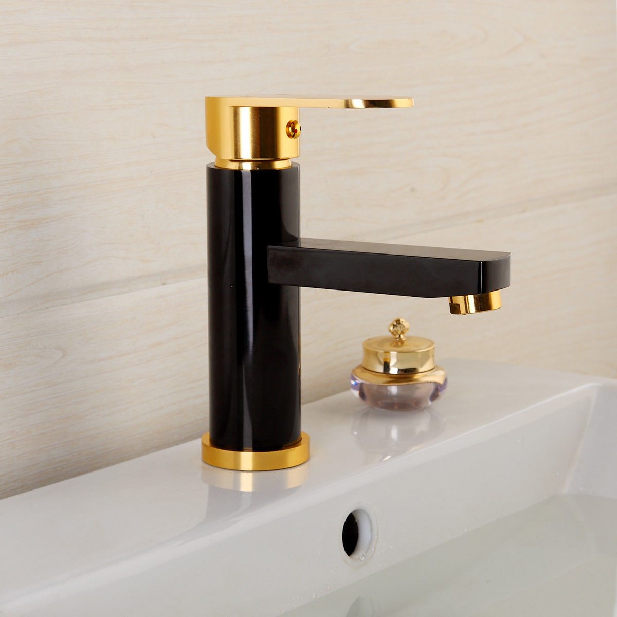 Zwart gouden wastafelkraan / mengkraan voor warm en koud.