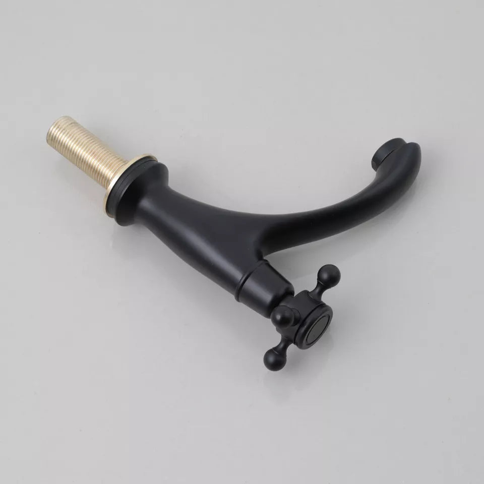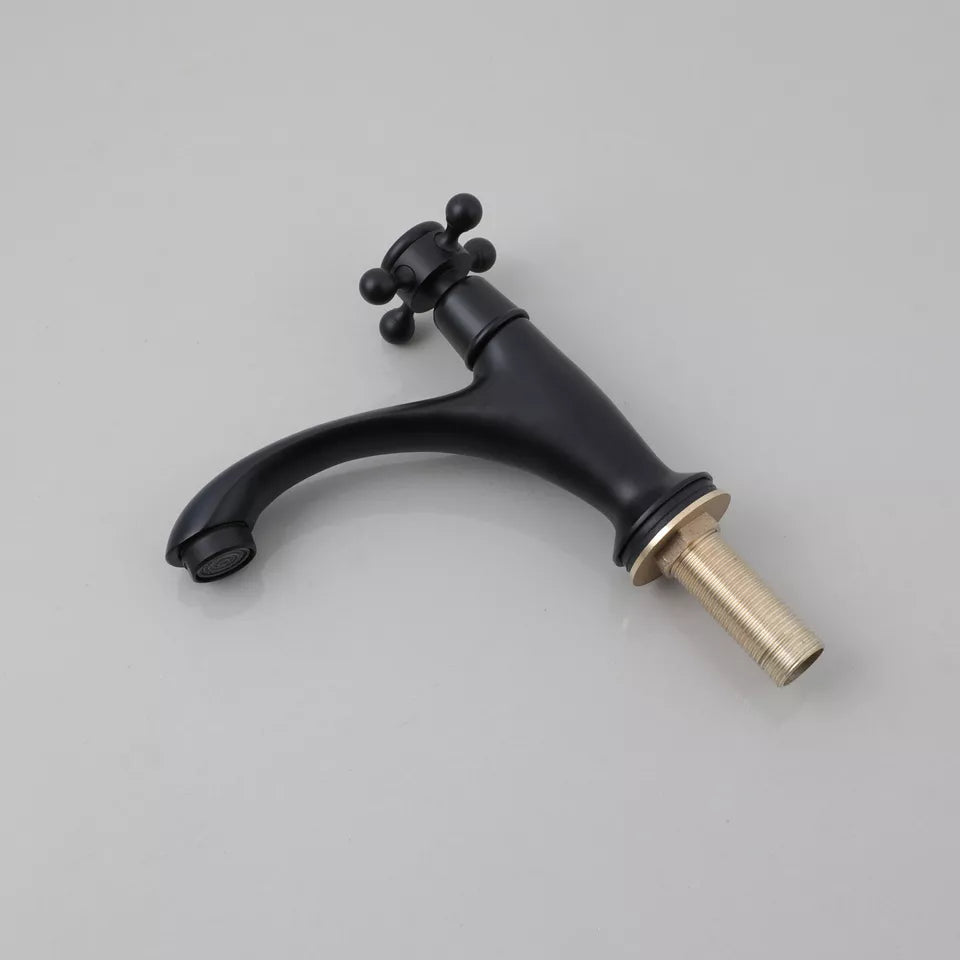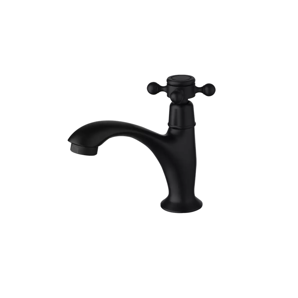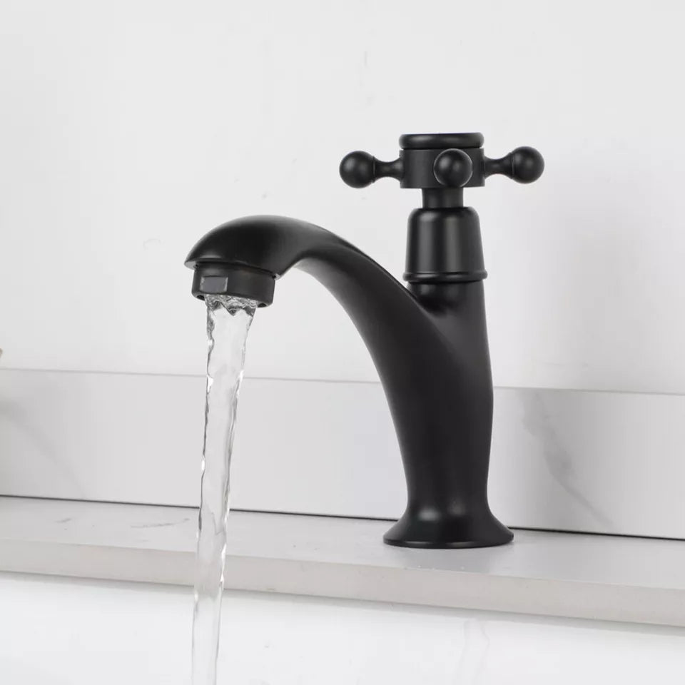 Het is een koudwater kraan, ideaal voor uw landelijke wc ruimte.