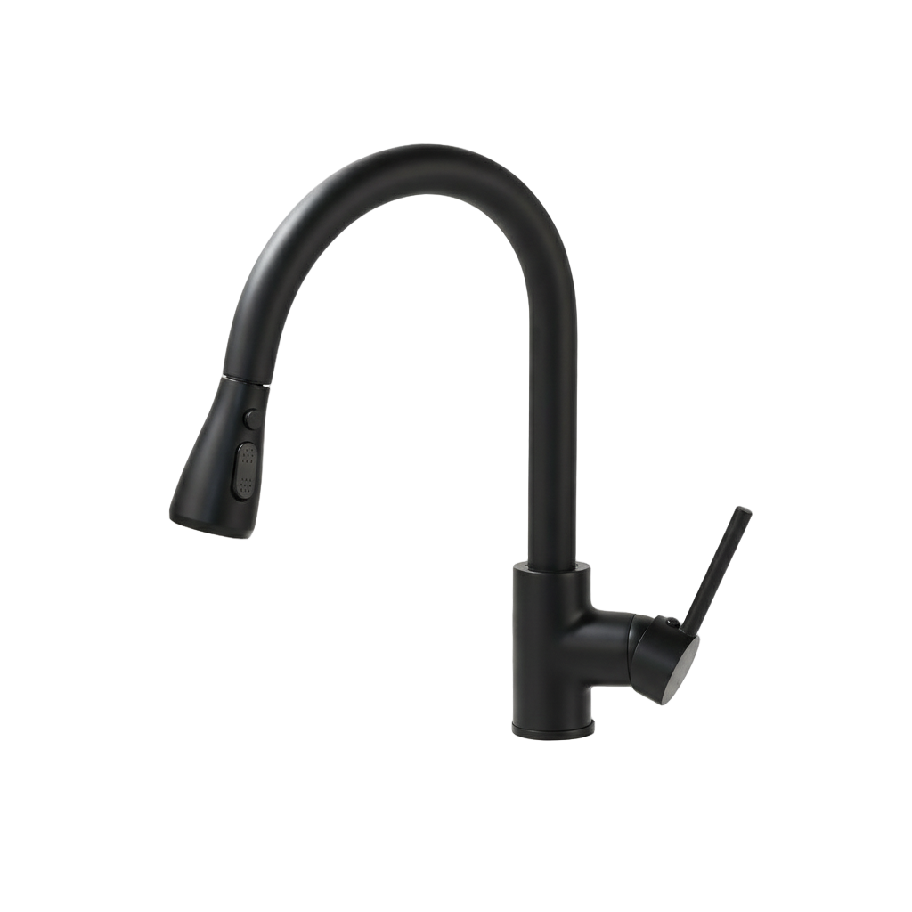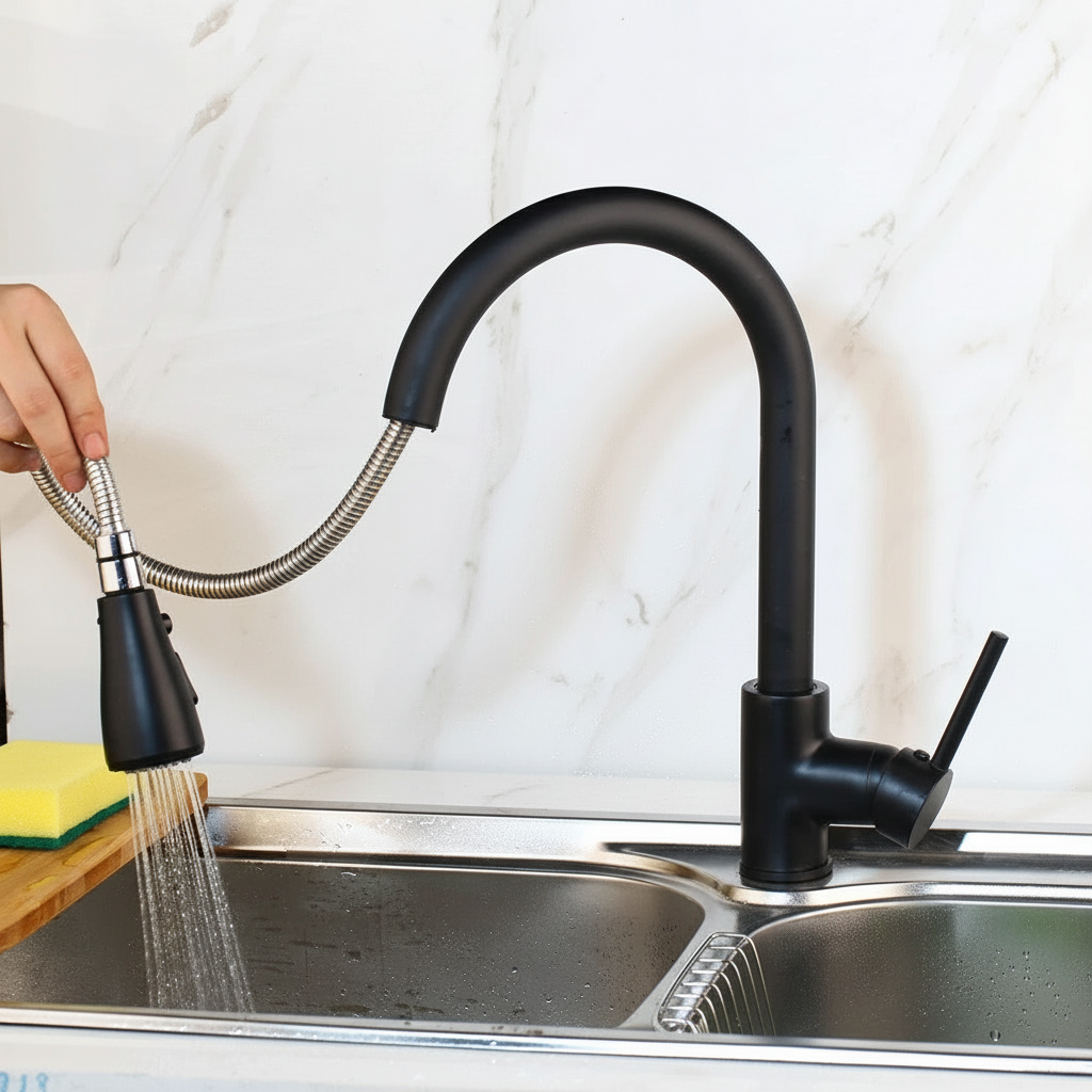 - Zwarte keukenkraan met uittrekbare sproeikop