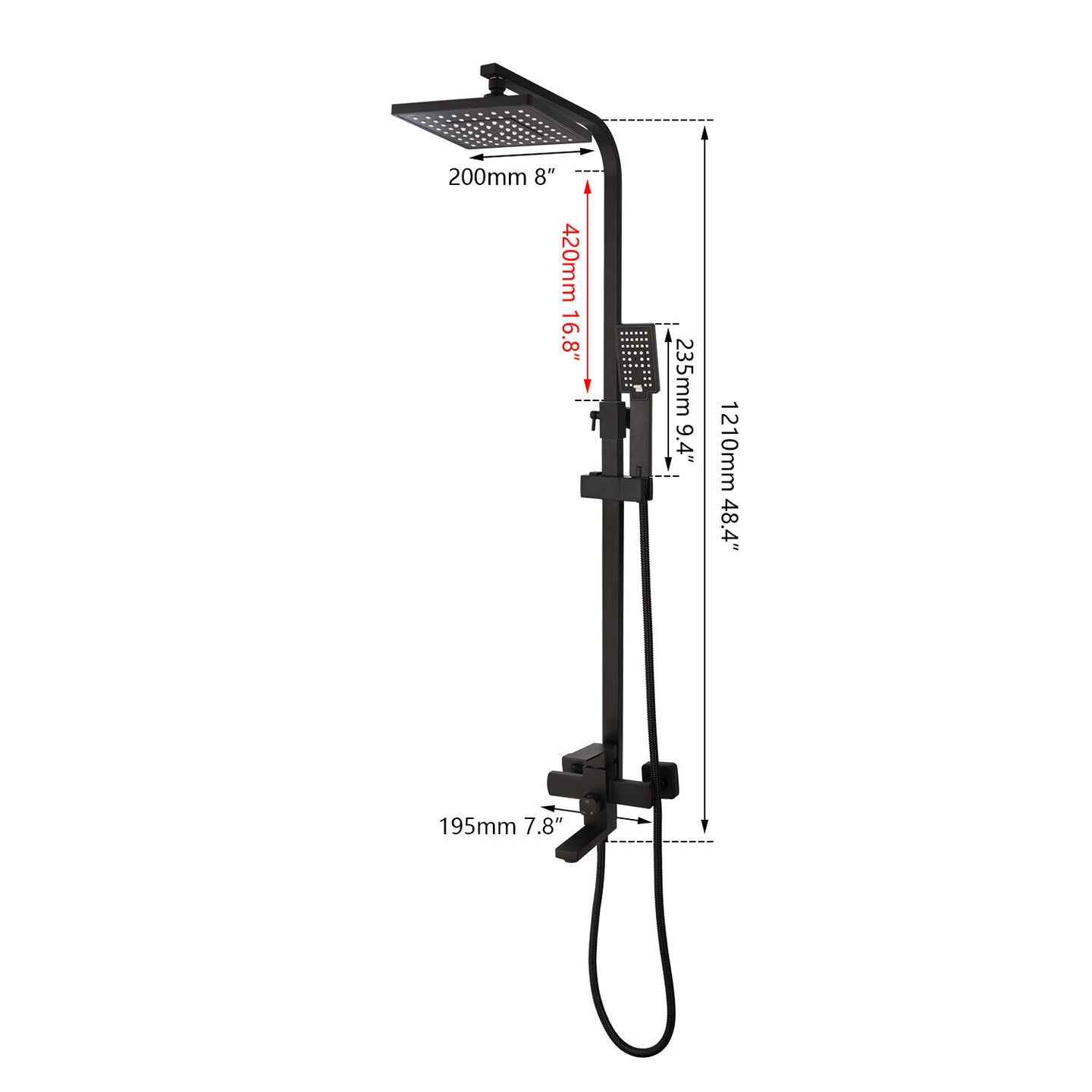 - Totale hoogte van de zwarte regendouche: 1210 MM