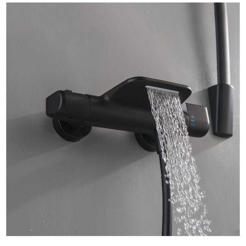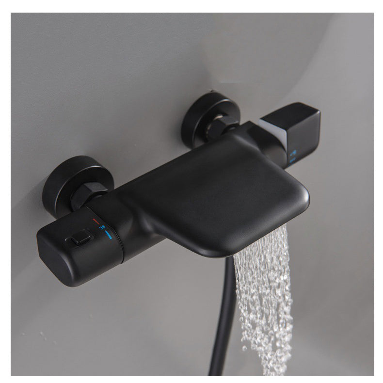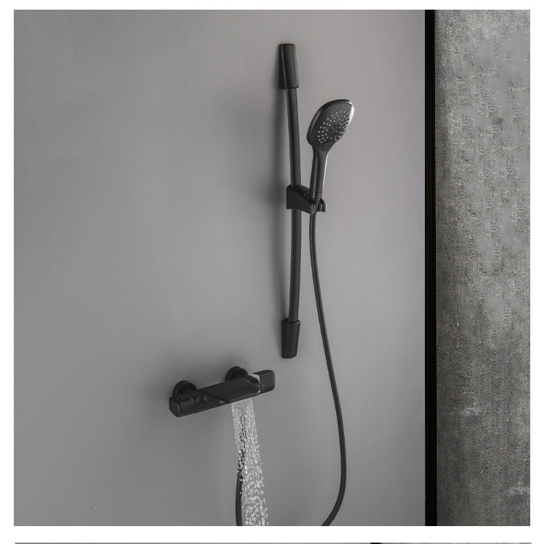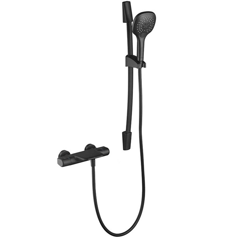 - Zwarte thermostatische badkraan met handdouche en glijstang