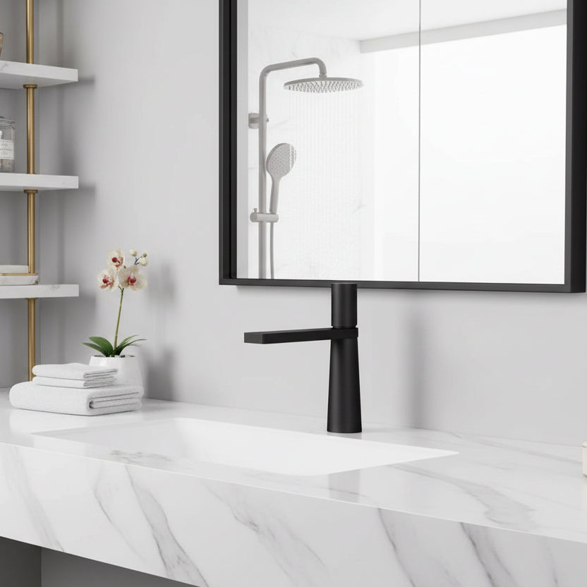 Deze moderne wastafelkraan in mat zwart combineert een strak design met optimaal gebruiksgemak. De minimalistische vormgeving en slanke uitloop maken deze kraan perfect voor moderne badkamers en opzetwastafels.