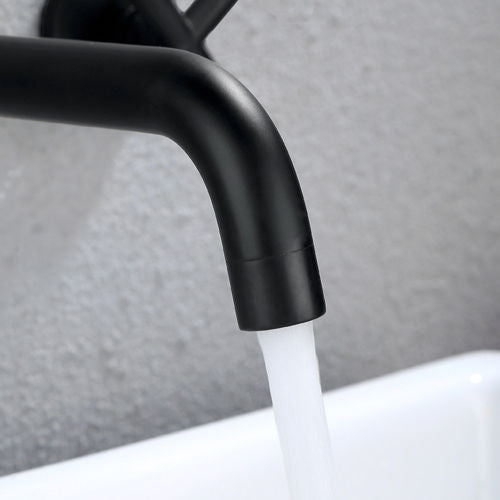 Geef je badkamer een moderne, luxe uitstraling met deze elegante matzwarte muurkraan. Dankzij het strakke ontwerp en de hoogwaardige afwerking past deze kraan perfect in een hedendaagse badkamer.