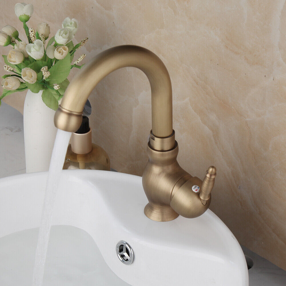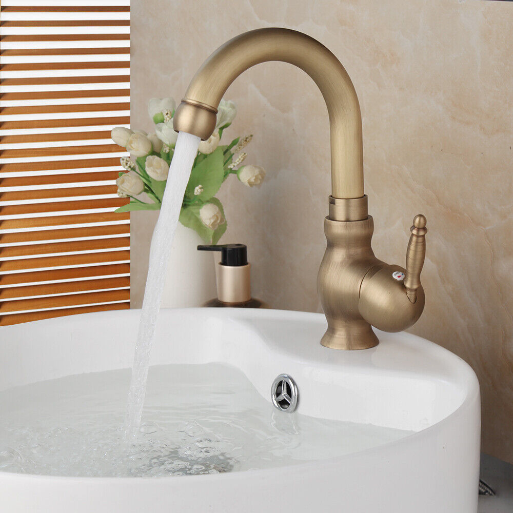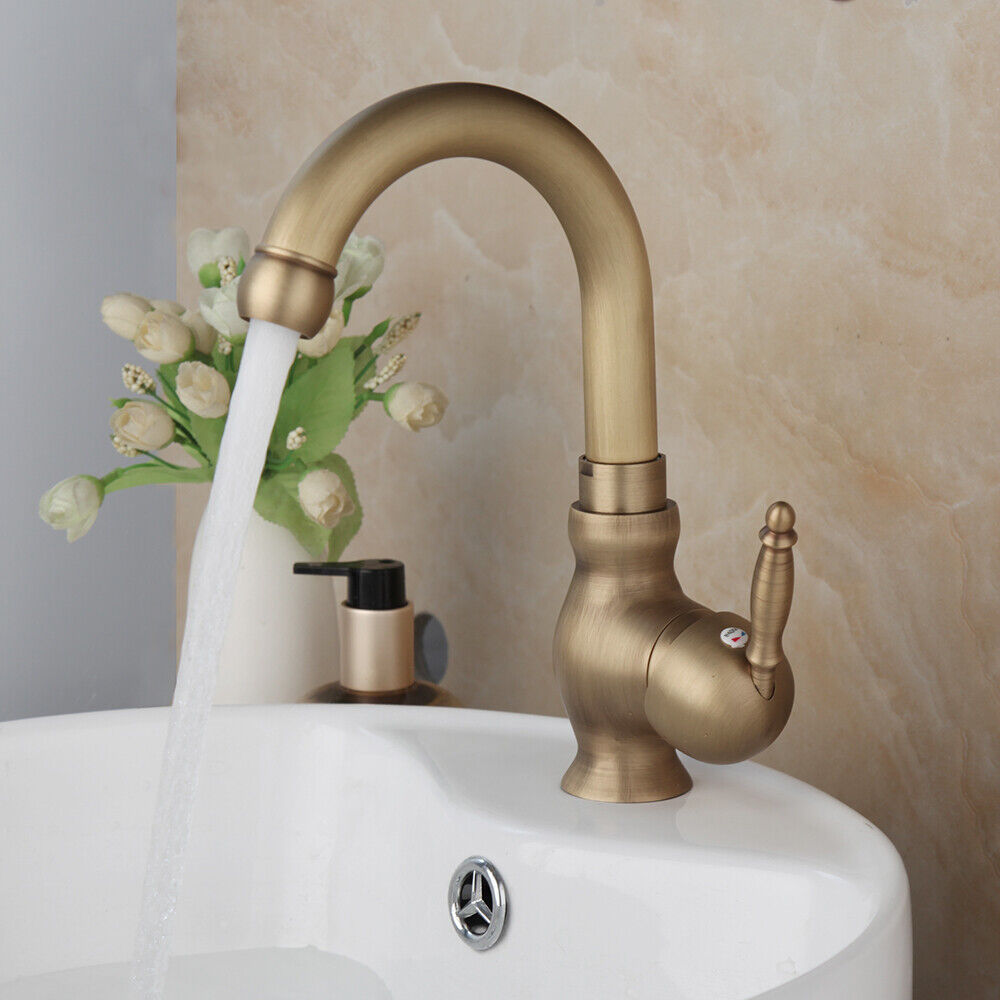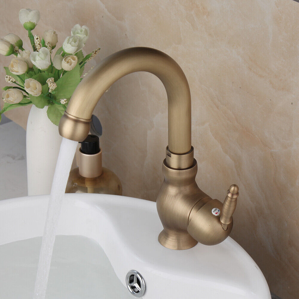 - Landelijke bronskleurige wastafelkraan met draaibare hals