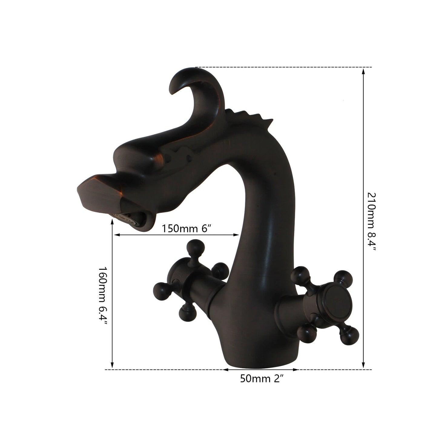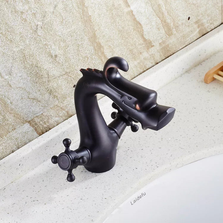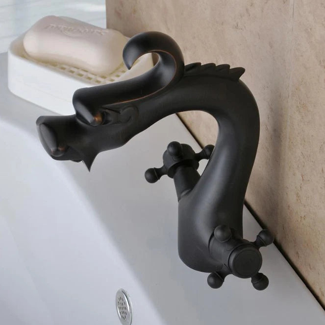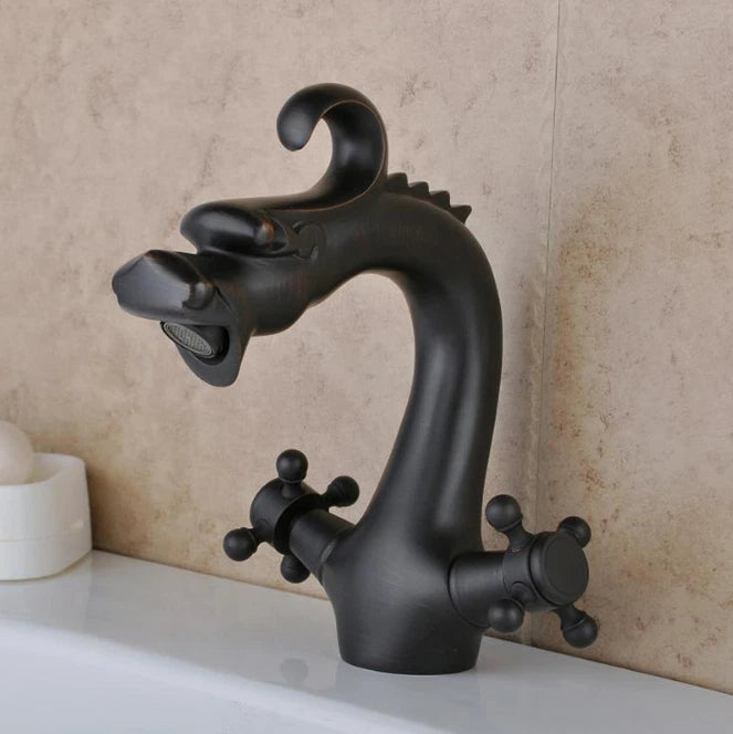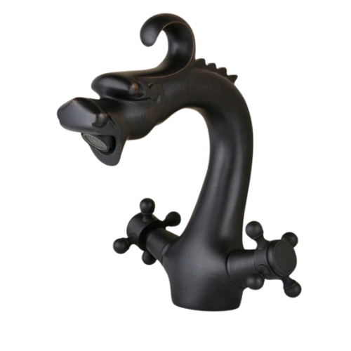 Breng karakter in je badkamer met deze opvallende drakenkop-wastafelkraan. Het unieke design in de vorm van een draak zorgt voor een eyecatcher boven iedere wasbak. Gemaakt van hoogwaardig messing en afgewerkt met een duurzame zwarte coating voor een stijlvolle, matte uitstraling. Dankzij de keramische schijven geniet je van een soepele bediening en langdurige lekvrije prestaties.